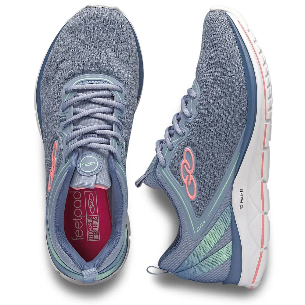 O Tênis Olympikus Day tem cabedal em tecido macio e sem costuras, fitas elásticas sobre o calcanhar e desenho com recortes na sola. A palmilha Feetpad, que memoriza o formato dos pés, e o solado com tecnologia Evasense garantem mais conforto e maciez.