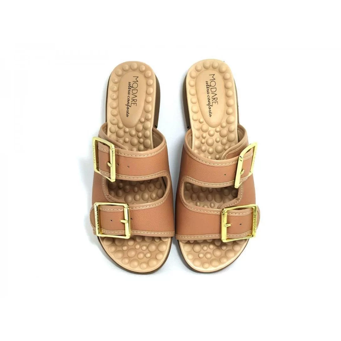 Tamanco Feminino da marca Modare fabricado em napa com solado em borracha antiderrapante. Este tamanco possui salto com altura aproximada de 3 cm e fivela com ajuste. Possui palmilha com tecnologia Reflex Sense em EVA ultramacio, possui esferas que massageiam os pés, ativando a circulação sanguínea. Esta é a tendência da estação Primavera/Verão.