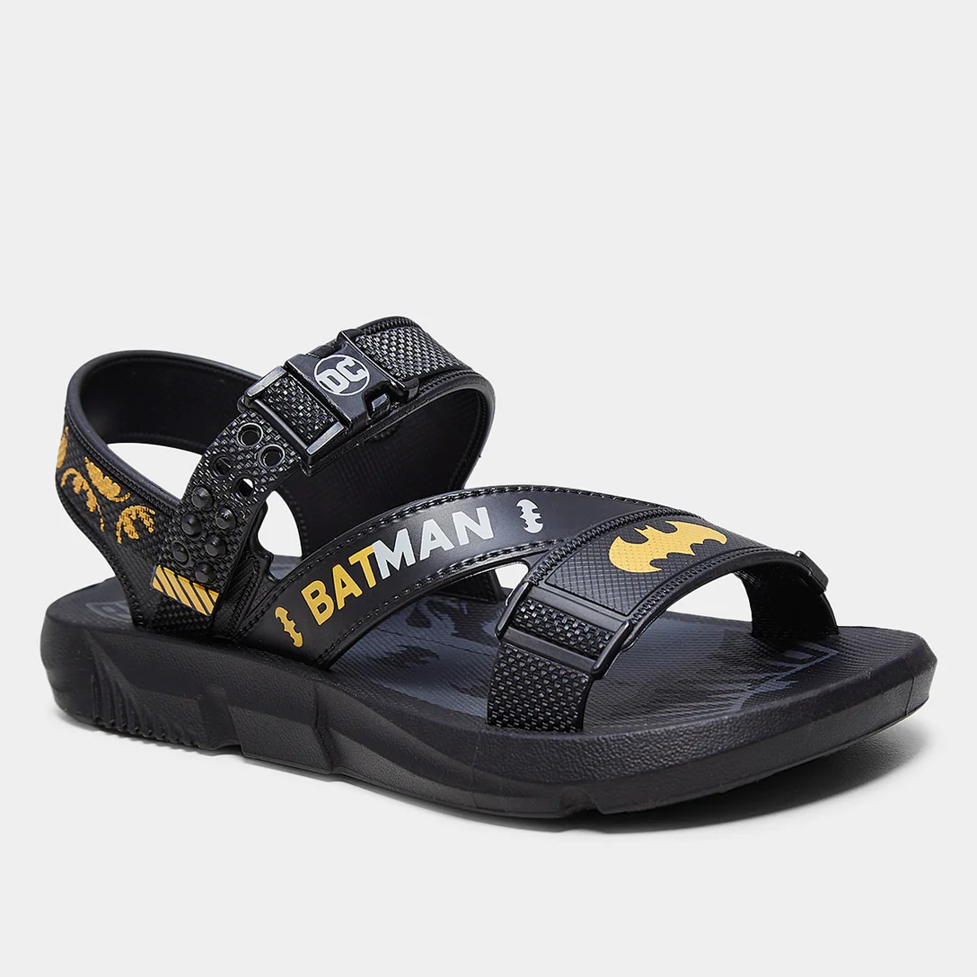 Esse lançamento do Batman chega de forma inclível: com lançador do Batman! Ele é um brinquedo extremamente reconhecido pelos meninos que amam o personagem e fará parte de muitas brincadeiras deles. Possui o personagem em evidência e os morcegos que são bem reconhecidos. A sandália em preto e amarelo com uma pegada esportiva e com destaque para o Batman.