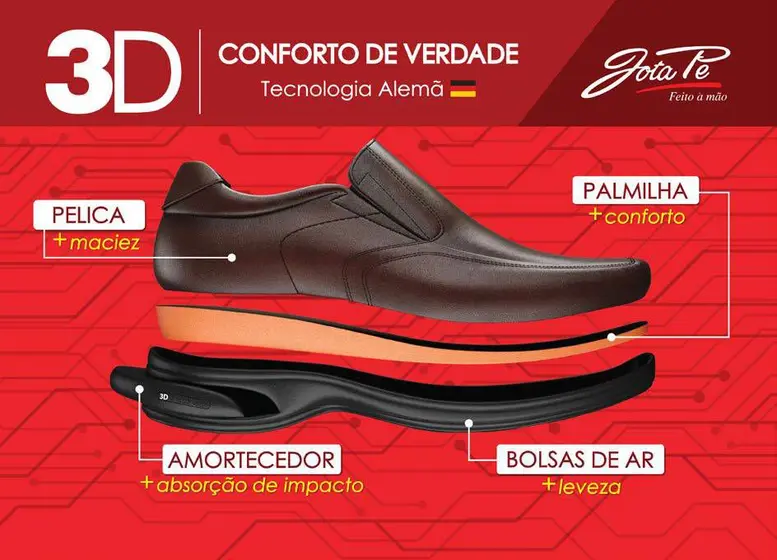 Transforme seus dias com o Sapato Casual Jota Pe 3D Vision! Com a revolucionária tecnologia 3D, você desfrutará de 3x mais amortecimento e conforto, garantindo conforto aos seus pés durante todo o dia. O solado em PU é leve e durável, assegurando que seus pés estejam sempre protegidos. As duas áreas Air Bag, com diferentes densidades de amortecimento, agem como bolsas de ar internas para um conforto ainda maior. E, no calcanhar, o amortecedor 3D proporciona uma fusão perfeita para o máximo conforto, tornando este sapato o parceiro ideal para seus dias mais agitados. Experimente a diferença da tecnologia 3D agora mesmo!