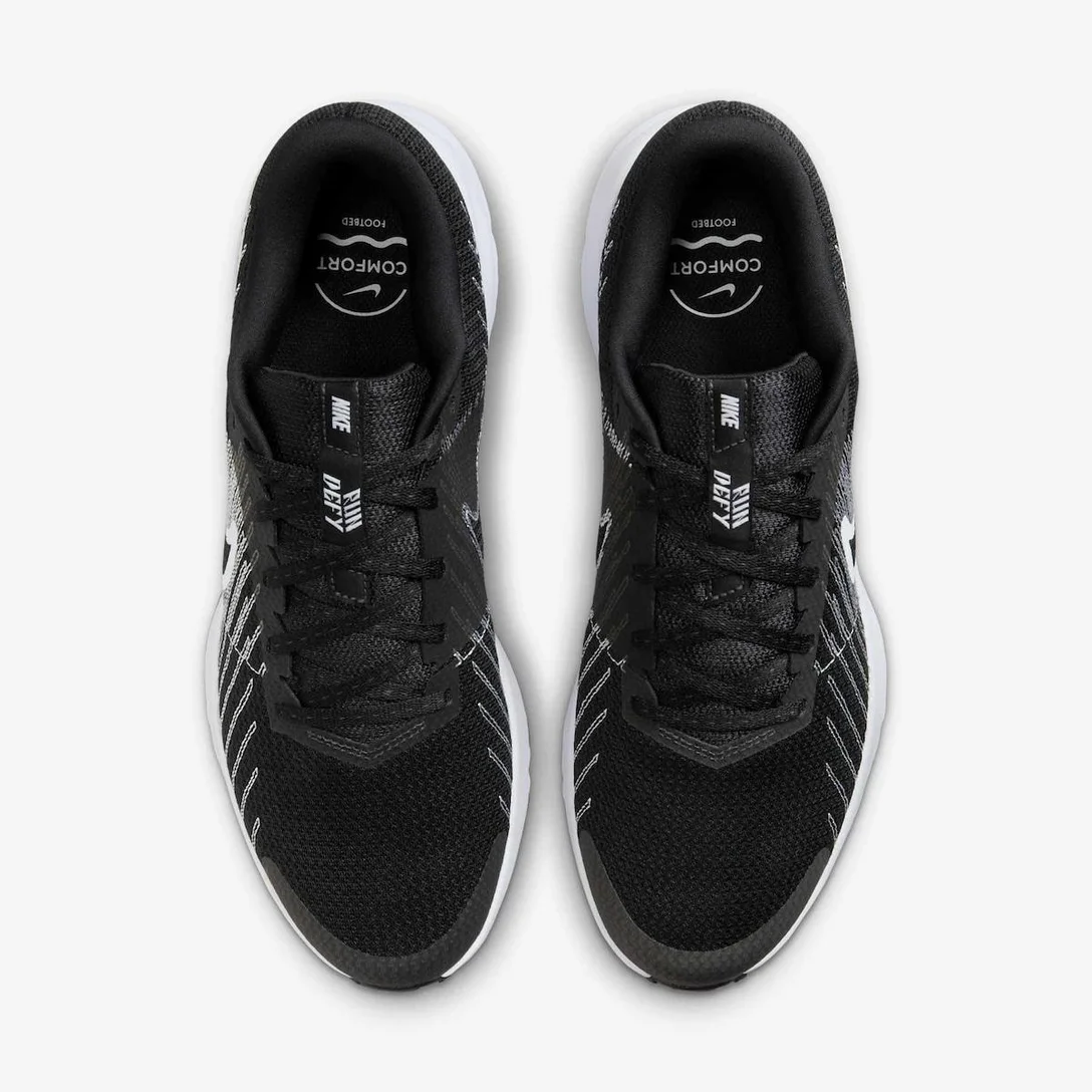 Corra de acordo com suas próprias regras com o novíssimo Nike Defy. Entressola de espuma, cabedal respirável e tração confiável são combinados para criar um tênis pronto para corridas de todos os comprimentos e ritmos.Principais Características-Mesh no cabedal aumenta a respirabilidade.-A entressola de espuma proporciona uma passada suave.-Ranhuras flexíveis criam um efeito amortecido para a sua corrida.-O solado waffle é feito de um material durável e flexível que ajuda você a se manter em movimento.-A borracha expandida na sola proporciona tração e durabilidade.Detalhes do Produto-Peso: Aprox. 281 g/9,9 oz (Tamanho Masculino 42)-Queda do calcanhar aos dedos: 10 mm