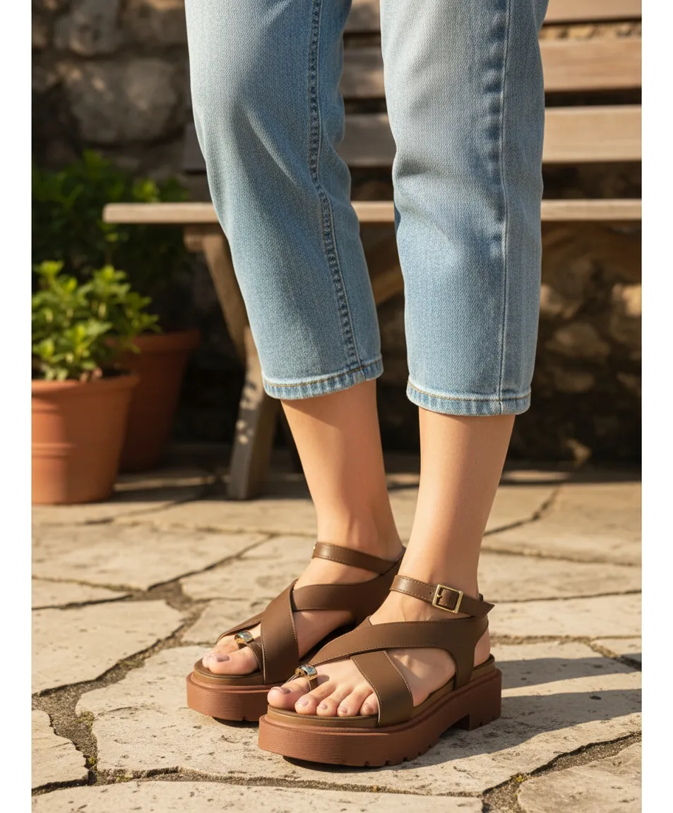 A sola flatform tratorada antiderrapante proporciona segurança e estabilidade em cada passo, mesmo em superfícies lisas, tornando essa sandália ideal para o dia a dia ou para compor produções urbanas e estilosas.