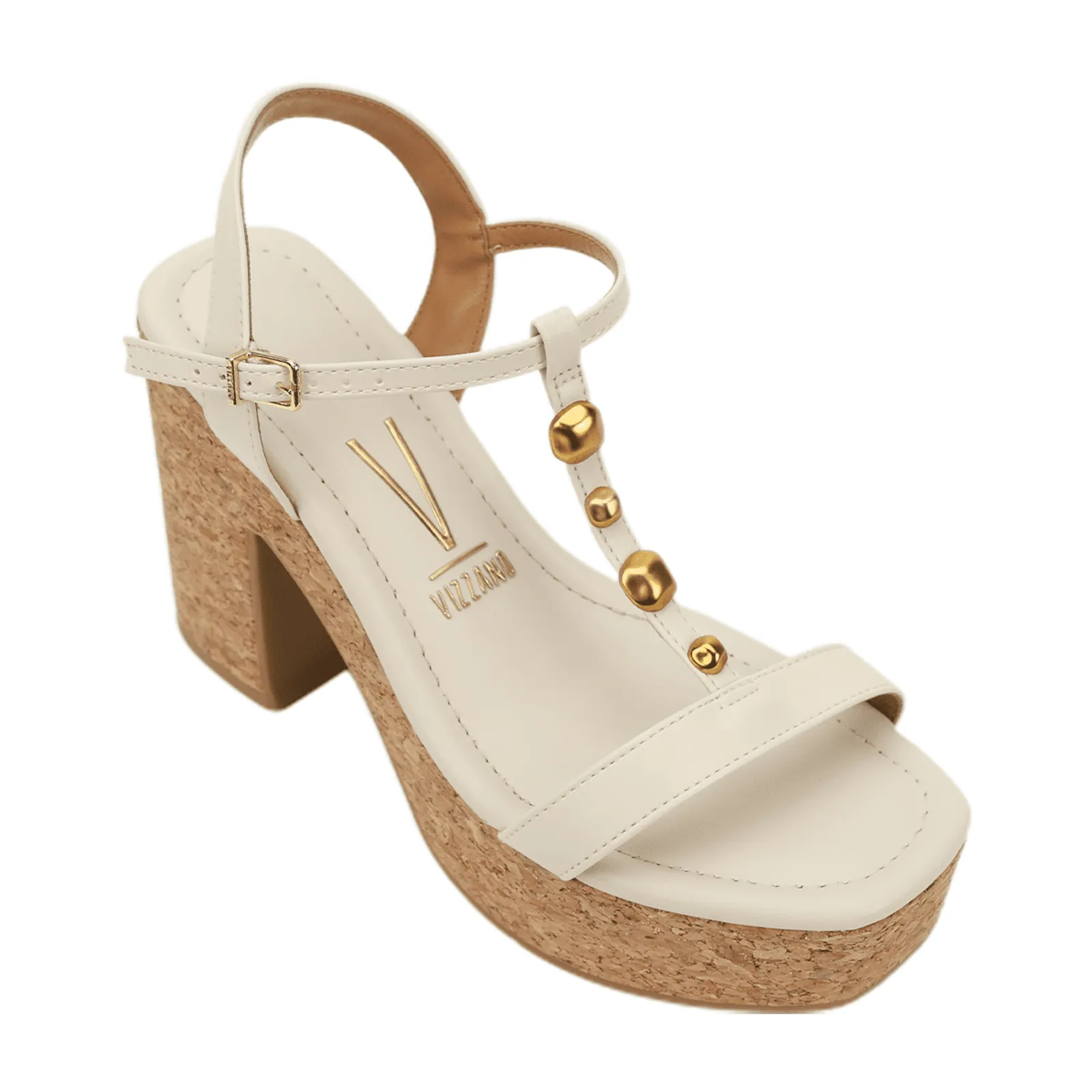 A sandália feminina Vizzano combina o visual sofisticado do salto grosso de 10cm com a leveza da base revestida em cortiça, trazendo estilo e conforto para qualquer produção. O cabedal em material sintético de acabamento delicado ganha destaque com a tira central adornada por esferas douradas, que conferem um toque moderno e elegante. O fechamento por fivela garante ajuste seguro e personalizado.
