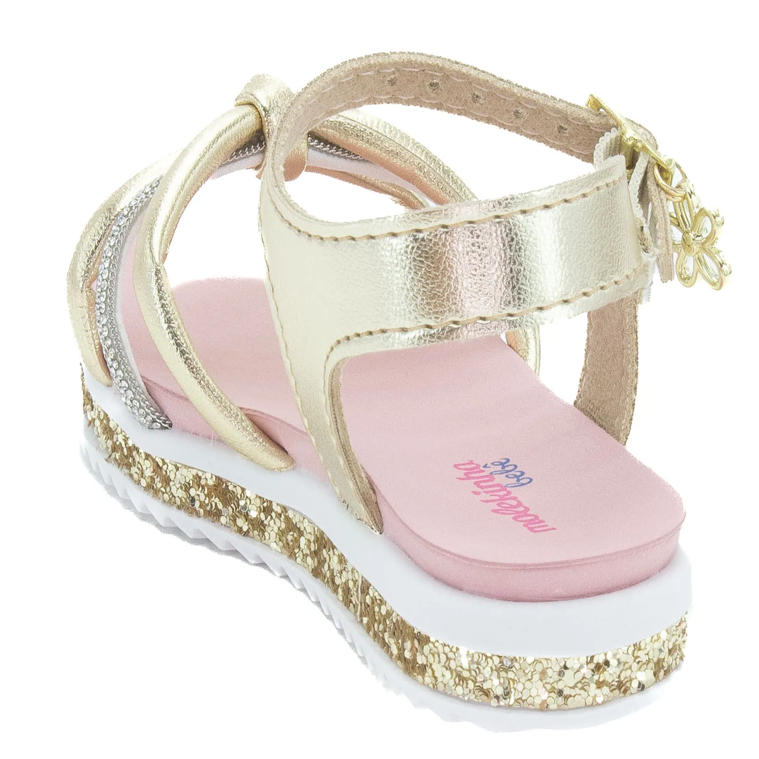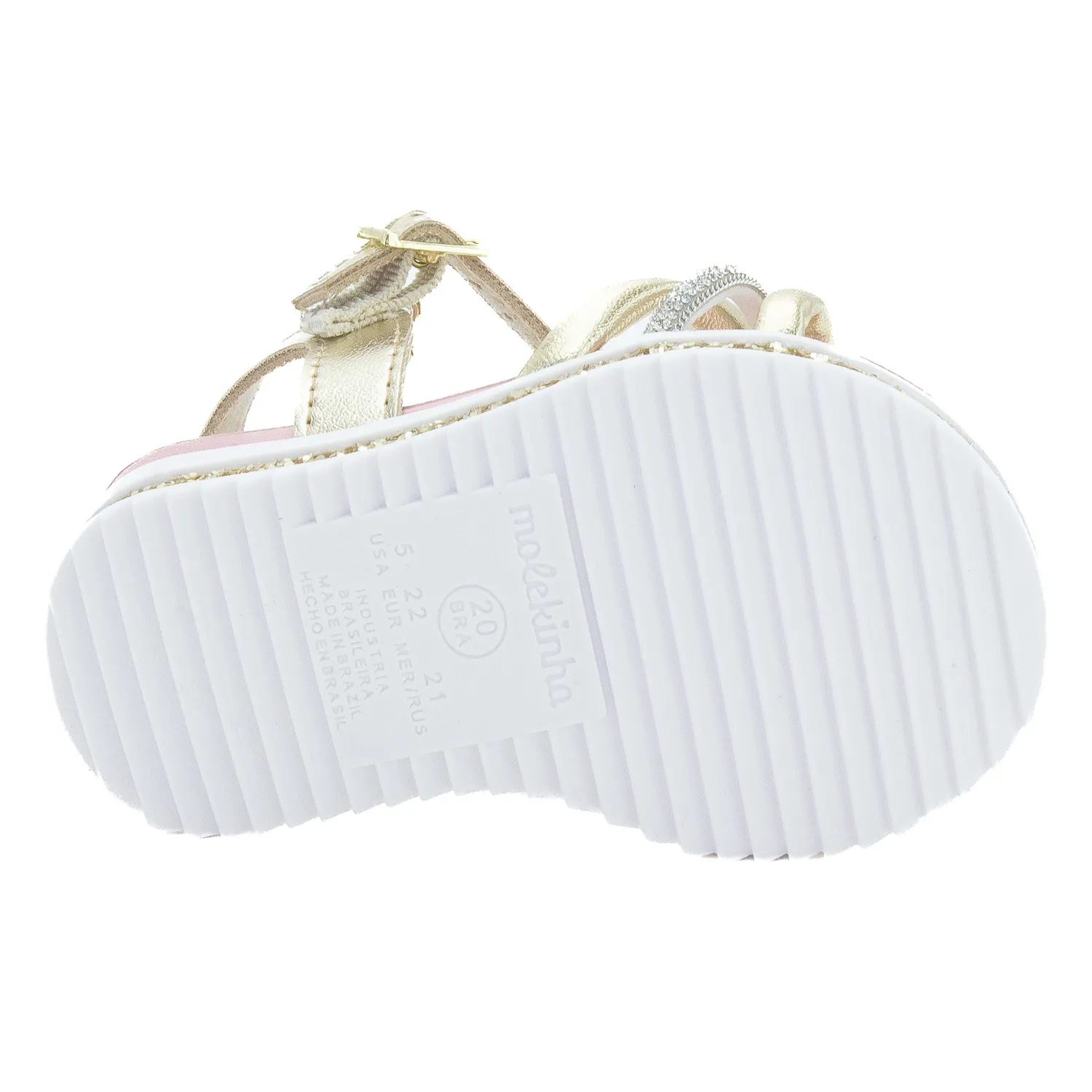 A Sandália Infantil Feminina Molekinha 2724.121 é a combinação perfeita de estilo, delicadeza e conforto para as pequenas. Confeccionada em material sintético resistente e fácil de limpar, apresenta tiras cruzadas com detalhe de brilho e um encantador pingente em formato de flor, que traz um toque de charme e feminilidade ao visual. Seu solado flexível e antiderrapante com acabamento em glitter garante segurança e diversão a cada passo, enquanto a palmilha macia e anatômica oferece conforto prolongado durante todo o dia. O fechamento por fivela ajustável proporciona praticidade e um ajuste seguro, ideal para acompanhar as crianças em passeios, festas ou momentos de lazer. Leve, moderna e cheia de estilo, a sandália dourada Molekinha é perfeita para complementar os looks de verão com um toque de brilho e alegria, permitindo que as meninas aproveitem cada aventura com conforto e muito charme.